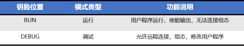 DEBUG:可以通過(guò)編程軟件控制用戶(hù)程序的運行和停止。但在DEBUG模式,可以下裝用戶(hù)程序,包括進(jìn)行完全下裝(停止用戶(hù)程序運行后才能進(jìn)行完全下裝)和增量下裝(可在用戶(hù)程序運行或停止狀態(tài)下進(jìn)行)。